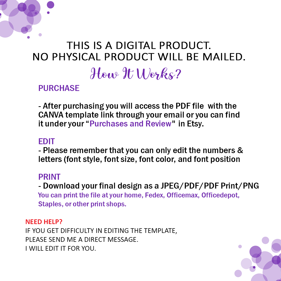 - After purchasing you will access the PDF file with the CANVA template link through your email.