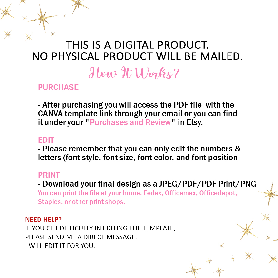 - After purchasing you will access the PDF file with the CANVA template link through your email.
